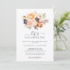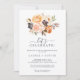 Esta rústica tierra floral celebremos que la invitación es perfecta para una fiesta de compromiso de otoño, boda tras fiesta, retiro, graduación o cualquier evento feliz. El elegante diseño en tonos tierra incluye flores de color acuático rústico en terracota, cobre, naranja quemado, melocotón, rosa y blanco crema de color rosa y rosa negro con un estilo boho vintage.