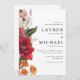 Combine productos botánicos románticos con la comodidad moderna usando esta invitación de boda con código QR. Con flores de acuarela pintadas a mano como amaryllis rojos, ranunculus rosado, crisantemo malva y lisianuro blanco, combina maravillosamente la naturaleza con la tecnología. Los huéspedes pueden escanear el código QR integrado para obtener acceso rápido a su sitio web boda, formulario RSVP o detalles digitales. La paleta de colores florales cálidos es ideal para los bodas de otoño, boho o jardín. Personalizar fácilmente el texto y el código QR para que coincidan con los detalles del evento.