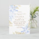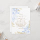 Invitación a la boda moderna rosas florales blancos y azules con polvo dorado son una invitación elegante y clásica. El diseño presenta un tipo de letra manuscrito y un diseño minimalista moderno. Para cambiar detalles, haga clic en "Personalizar".