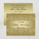 Una imagen de diseño Digitalbcon con un tema de color dorado con una variedad de imágenes personalizadas, formas, patrones, estilos y fuentes en esta invitación de aniversario de bodas de oro única. Esta elegante tarjeta de invitación viene completa con un diseño complementario en el reverso con letras de texto personalizadas para adaptarse a su ocasión especial. ESTE DISEÑO TAMBIÉN ESTÁ DISPONIBLE EN TAMAÑOS DE TARJETA 4.5X6.25, 5.5X7.5