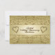 Un diseño de imágenes Digitalbcon que presenta un tema de color dorado con una variedad de imágenes personalizadas, formas, patrones, estilos y fuentes en esta tarjeta de invitación de respuesta para el aniversario de bodas de oro única. Esta colorida tarjeta de invitación viene completa con un diseño complementario en el reverso con letras de texto personalizadas para adaptarse a su ocasión especial.