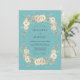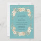 Delicadas flores de crema y suaves vegetales dispuestos artísticamente en un arco fluido crean una atmósfera etérea. Este diseño evoca romance y elegancia atemporal con su sereno fondo azul verdoso. Una hermosa opción para una celebración sofisticada.