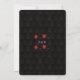 Diseño de tarjeta temático elegante Casino Royale y Gran Gatsby. Cuenta con estilo art déco negro dorado vintage, un marco floreado de oro falso de Hollywood antiguo de los locos años 20, corazones rojos, Q y K en dos esquinas (simulando cartas de juego), sobre fondo de patrón art déco negro dorado. Se utilizan palabras especiales como en un juego de póquer. En la parte posterior, patrón art déco dorado falso e iniciales entre palos de cartas de juego. Utilice la herramienta Personalizar para agregar su información. Para más, visite mi Colección Casino Gatsby.