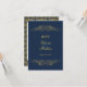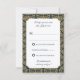 © Socialite Designs. Nuestra elegante tarjeta de respuesta a eventos tiene un hermoso damasco de oro falso texturizado sobre un fondo de color azul marino (Hex - #152946) y un diseño de florecimiento texturizado de oro falso. Combine esta elegante tarjeta de RSVP con la invitación de boda a juego.