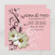 Estas hermosas Tarjetas de "Save the Date" florales presentan un diseño elegante y ornamentado, con flores blancas en un remolino de florituras rizadas sobre un fondo rosa peonía. Utilice el botón PERSONALIZAR arriba para agregar texto. "Ornate Floral Flourish" por Cheryl Daniels © 2014. Este diseño también está disponible en invitaciones, favores de galletas, almohadones, servilletas, etiquetas de favores y más. Para preguntas o solicitudes personalizadas, contacte: Cheryl@CherylDanielsArt.com.