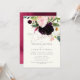Flores acuarela rosas borgoña y rojizo con follaje de Anemone y Eucalipto blancos. Acentuada con una elegante y moderna escritura manuscrita en rosa rojizo para Invitación de Boda. Color de fondo personalizable.