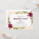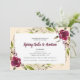 Esta elegante invitación a la subasta de Gala de Primavera y a la recaudación de fondos cuenta con hermosas flores de color burdeos y vegetación acentuada con textos de escritura.