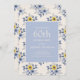 Flores azules y amarillas suaves y femeninas en una invitación blanca de cumpleaños número 60 para las mujeres.