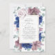 Invitaciones a la ducha de novias románticas con flores de color malva y azul marino