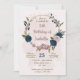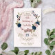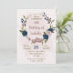 Hermosa invitación romántica de fiesta de cumpleaños con flores rosa azul marino y algunas hojas de bonito. PARA OBTENER MÁS PRODUCTOS COINCIDENTES, haga clic en la colección de arriba o póngase en contacto conmigo