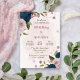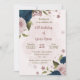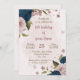 Hermosa invitación romántica de fiesta de cumpleaños con flores rosa azul marino y algunas hojas de bonito. PARA OBTENER MÁS PRODUCTOS COINCIDENTES, haga clic en la colección de arriba o póngase en contacto conmigo