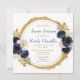 Invitación Flores azul marino y oro elegantes dulce dieciséis