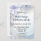 Esta hermosa invitación editable presenta los detalles de un evento enmarcado por flores azules claras. En la parte posterior, hay un campo editable para información adicional. El texto en ambos lados es editable, así que adelante y cambie los detalles, así como el estilo de fuente, tamaño y color. El color de fondo en la parte posterior también se puede cambiar. Esta tarjeta de invitación versátil se puede utilizar para una celebración de la vida, cumpleaños, jubilaciones, aniversarios, etc. Por favor, vea las opciones para la forma de las tarjetas.