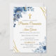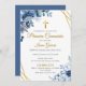 Celebra un hito sagrado con invitación de Primera Comunión Azul Floral. Con flores azules de acuarela y una cruz dorada, esta invitación el equilibrio perfecto entre lo lindo y lo elegante. Ideal para anunciar una ceremonia primera de comunión de una hermosa y significativa desde el punto de vista religioso. Disponible en español. Celebrar un hito sagrado con esta invitación a la primera comunión floral azul. Con flores azules color agua bonito y una cruz dorada, esta invitación logra el equilibrio perfecto entre la comodidad y la elegancia. Ideal para anunciar una preciada ceremonia de la primera comunión de una manera hermosa y religiosamente significativa. Disponible en español.