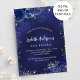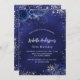 Un fondo azul marino, decorado con purpurinas de plata falsa, chispas y flores azules. El color azul es desigual. Personalice y agregue un nombre y detalles del fiesta.