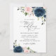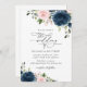 Invite a los amigos y a la familia con estilo y establezca el tono para su día especial con esta encantadora invitación a la boda. El diseño presenta flores de acuarela color azul marino y rosa y vegetación sobre fondo blanco.