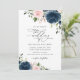 Invitación Flores azules de la marina, flores rosas, Boda flo