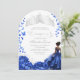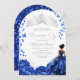Invitación Flores Azules Florales de Tiara Quinceanera