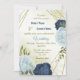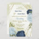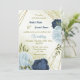Hermosa invitación a la boda con flores azules polvorientas y hojas verdes. Los detalles del purpurina dorado se simulan. Es adecuado tanto para bodas como para invitaciones de compromiso. PARA OBTENER MÁS PRODUCTOS COINCIDENTES, haga clic en la colección de arriba o póngase en contacto conmigo