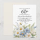 Hermosa invitación al 60 aniversario de boda de estilo rústico con bonitos de flores azules y margaritas blancas.