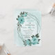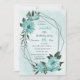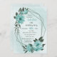 Invitación única para una fiesta de cumpleaños con un romántico wreath botánico de flores azules y hojas verdes.