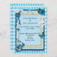 Una elegante invitación a la boda clásica. las flores azules y las mariposas le dan un toque de encanto a esta hermosa invitación a la boda. Un bonito fondo azul de gingham soporta cintas y flores para un tema único. Este aspecto irá bien en cualquier estación boda, primavera, verano, otoño o invierno. Ideal para un boda moderno y perfecto para un boda clásico.
