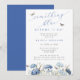 Bonito "algo azul antes de la invitación a la ducha de novia con hortensias azules, mariposas y fuentes caligráficas.