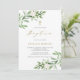 Vegetación acuarela y invitación al bautismo de flores blancas | Invitar a familiares y amigos a su evento con esta invitación al bautismo de personalizable. Cuenta con ilustraciones acuáticos de follaje y flores blancas con un patrón a juego. Esta invitación al bautismo floral es perfecta para bautizos primaverales y de jardín.