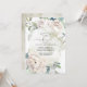 Invitación Flores blancas de época y Baby Shower verde