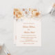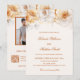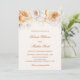 Esta invitación a la boda exuda elegancia atemporal con su diseño suave y romántico. La parte superior está decorada con delicados florales estilo acuarela en tonos cálidos de marfil, oro y blanco, creando un marco suave y elegante. El diseño es limpio y equilibrado, con una combinación armoniosa de fuentes sans serif clásicas y un guión elegante escrito a mano utilizado para los nombres de novias y novios, añadiendo un toque personal y sofisticado. La estética general es refinada y romántica, perfecta para una celebración formal o con temática de jardín.