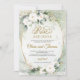 Invitación Flores blancas eucalipto dorado ovalo sube y brill