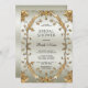 Invitación Flores blancas ornadas doradas ducha de novia