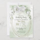 Invitación flores blancas verde oro óvalo cumpleaños