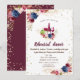 Diamantes de oro y flores borgoña sobre fondo blanco.