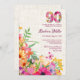 Flores de 90 años - Mariposas invitan a los 90 años. Celebra un cumpleaños histórico con estilo con esta vibrante invitación floral de fiesta de cumpleaños número 90. Con un audaz "90" florido en la parte superior y un exuberante jardín de flores en la parte inferior, este diseño exuda encanto y elegancia. Con el texto del personalizable para el nombre, la fecha, la hora y el lugar del honor, es perfecto para celebraciones de cumpleaños de primavera o verano. El acento de la mariposa aporta un toque caprichoso, por lo que es ideal para los fiestas de inspiración natural o de temática jardín. ¡Disfrútalo!