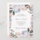 Esta hermosa invitación a la boda presenta un marco de flores y rosas de hidrato rosa y púrpura de color de agua vintage, con un elegante guión moderno y texto clásico y una sólida espalda blanca.
