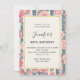 Invitación Flores de acuarela rosadas en rayas de cumpleaños
