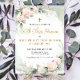 Esta hermosa invitación de reunión de clase presenta flores de acuarela rosadas y grises con una cruz dorada. Es perfecta para una reunión de una escuela religiosa.