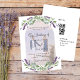 Un fondo blanco decorado con flores de lavanda, eucalipto y un armazón para la foto. Personalice y sus nombres y detalles. Atrás: agregue la URL de su sitio web boda al código QR para obtener más detalles y/o RSVP.