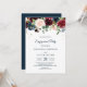 Invitación Flores de Belleza Burgundy Rústico Azul Marino y R