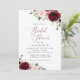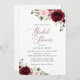 Invitación Flores de Borgoña, flores rosas, ducha de novia