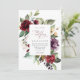 Invite a los amigos y a la familia con estilo y establezca el tono para su día especial con esta encantadora invitación a la boda. El diseño presenta flores de color burdeos, rosa y violeta y vegetación sobre fondo blanco.