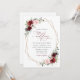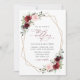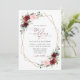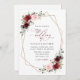 Invite a los amigos y a la familia con estilo y establezca el tono para su día especial con esta encantadora invitación a la boda. El diseño presenta flores de color burdeos y rosa oscuro, vegetación y marco dorado sobre fondo blanco.