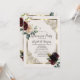 Invitación Flores de Borgoña Marco Dorado, Jubilación Confeti