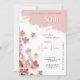 Invitación de cumpleaños 50 Botánica de rosa de copa de vino rojo rústico. El diseño tiene hermosas flores rosadas en brillo falso rosa y pincelada rosada. Agregue sus datos y haga una invitación perfecta para una mujer que está celebrando su cumpleaños cincuenta.