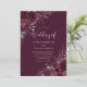 Flores de Burgundy con Brillo Plateado Invitación de Boda Elegante