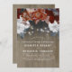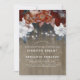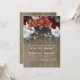 Invitaciones a una cena rústica con flores con luces de cuerda y ramo de flores moradas, blancas y borgoñonas de ciruela