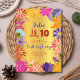 Flores de contorno dorado Invitación de cumpleaños. Simple y lindo. Nombre editable, dirección.