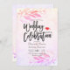 Plantilla de Tarjetas de Invitación para Boda Moderna / Fiesta de Despedida de Soltera - Hojas de Acuarela Suaves Magenta Salmón Rosa Caliente Púrpura y Letra a Mano sobre Fondo de Salpicadura de Acuarela. Un Diseño Perfecto para tu Gran Día. ¡Todo el estilo de texto, colores y tamaños pueden ser modificados para ajustarse a tus necesidades!