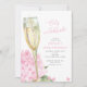 Este hermoso diseño presenta flores de hortensia rosadas, una copa de champán dorada y tu texto personalizado. Utiliza el formulario de plantilla para agregar tu información.
